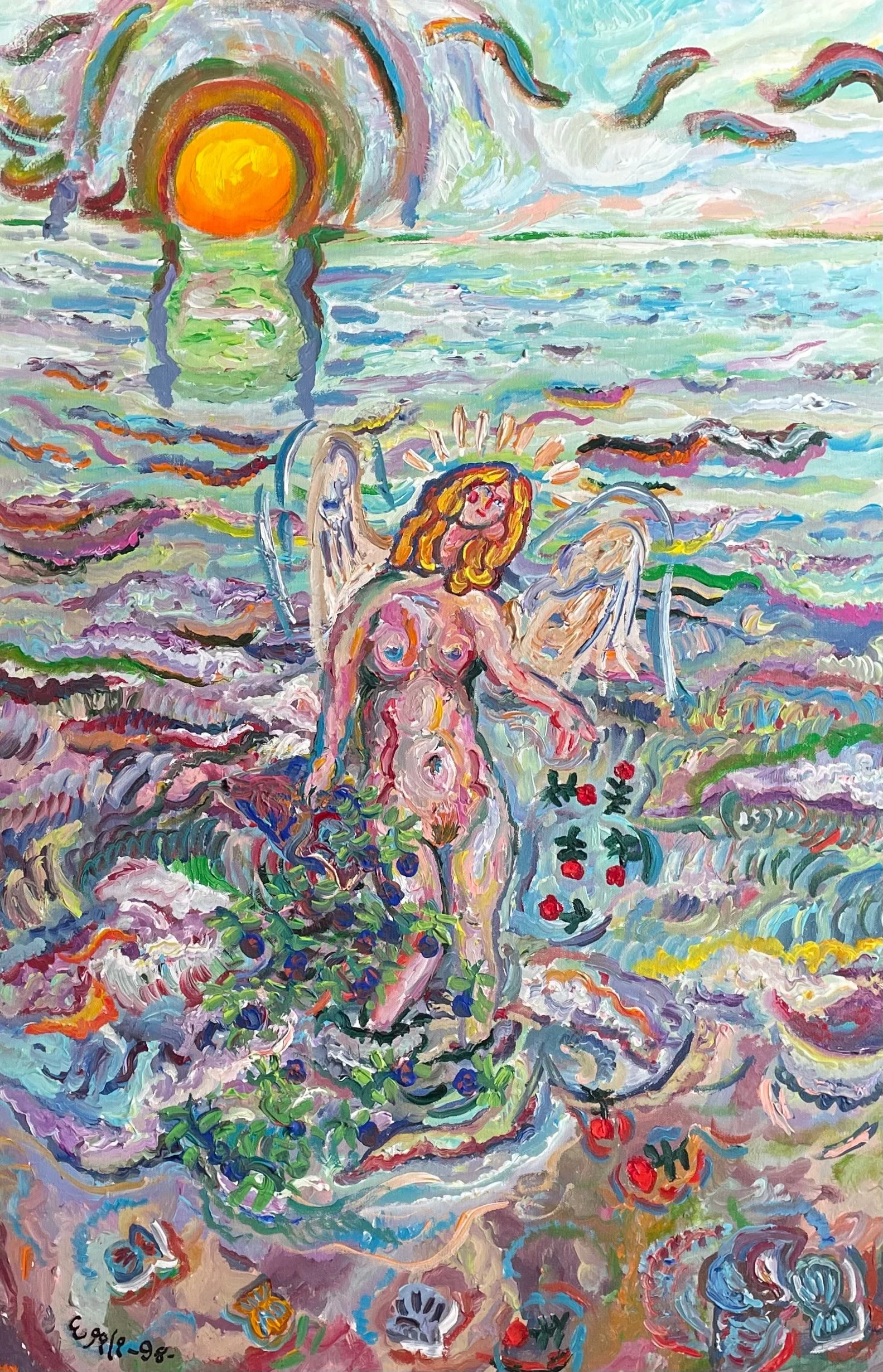 Angel with Blue Roses